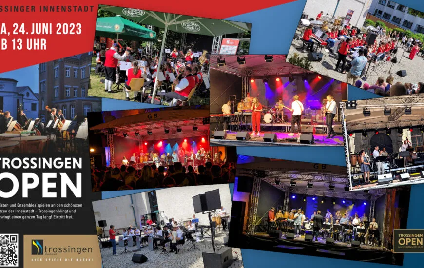 "Trossingen OPEN" ist ein Musikfestival, das aus dem Internationalen Straßenmusikfestival Trossingen im Jahr 2000 entstand. Nach mehreren Jahren der Planung und aufgrund von Pandemieeinschränkungen wurde das Festival im Jahr 2023 als "Musiksommer" realisiert. Die Veranstaltung bot eine breite Palette von musikalischen Darbietungen und förderte die Zusammenarbeit zwischen Kulturschaffenden, darunter die Hochschule für Musik und andere Musikkünstler, und trug dazu bei, die reiche Kulturlandschaft von Trossingen zu feiern.