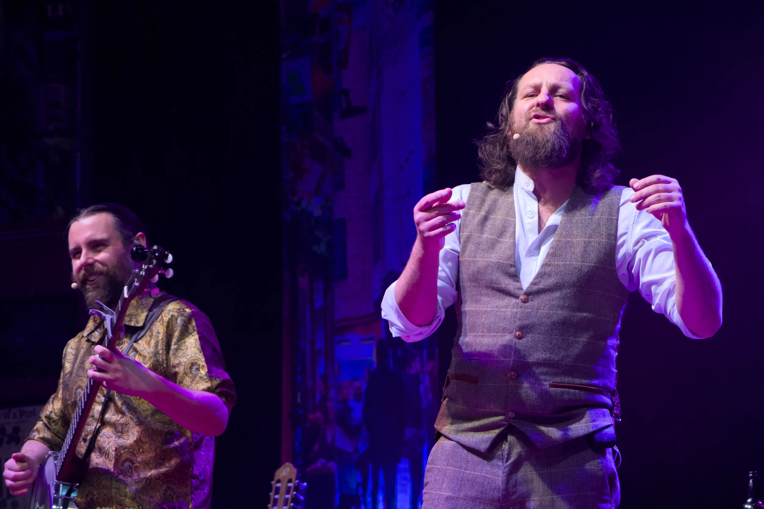 Das Konzept der Show ist einfach und wirkungsvoll: Die Atmosphäre von O’Donoghue’s Pub – dem legendären Ort, »an dem alles begann« – wird ins Bühnenlicht übertragen. Die Musiker:innen spielen dabei nicht die Dubliners, sondern feiern ihre Musik: unprätentiös, mitreißend und handwerklich exzellent. Zwischen den Liedern führt Ged Graham als Erzähler mit Anekdoten, Erinnerungen und trockenem Humor durch die wechselnden Jahrzehnte der irischen Musikgeschichte – ein Faden, der die Show zusammenhält und zugleich Raum für Emotion lässt, da auch die Geschichte der Dubliners nicht nur von goldenen Stunden geprägt war.