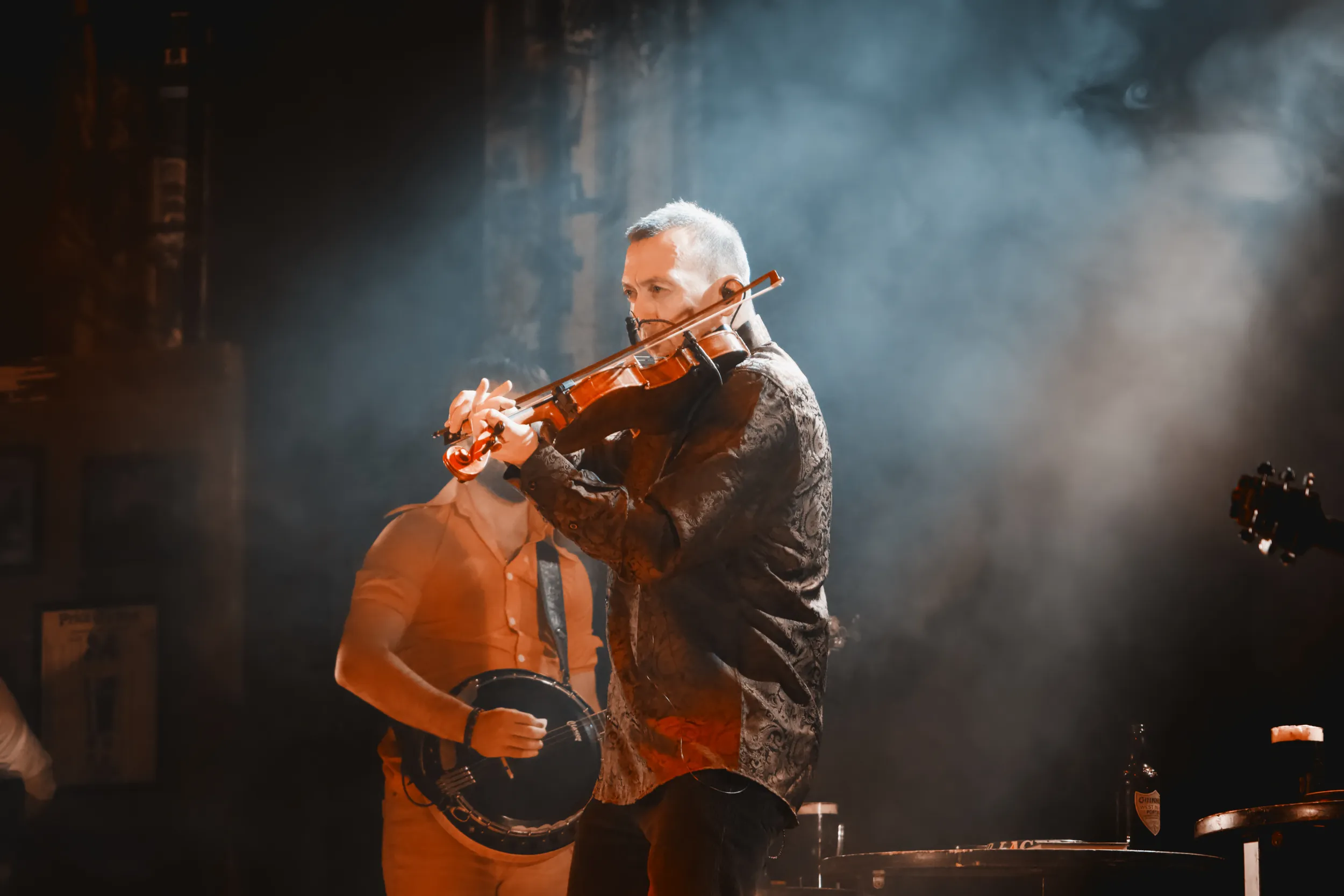Musikalisch überzeugte der Abend durch mitreißend gespielte Klassiker wie »Seven Drunken Nights«, »The Wild Rover« oder »The Town I Love So Well«. Die Stimmen waren kraftvoll und erdig, jede einzelne voller individuellem Charakter, das Zusammenspiel von einer Natürlichkeit, die gerade im Folk so schwer zu erreichen ist. Besonders ein von allen Bandmitgliedern gesungenes A-cappella-Stück markierte einen Moment stiller Intensität, in dem die rohe Emotionalität irischer Volksmusik unmittelbar spürbar wurde. Schnell sprang die Energie auf das Publikum über – es wurde mitgesungen, mitgeklatscht, am Ende stand der ganze Saal.