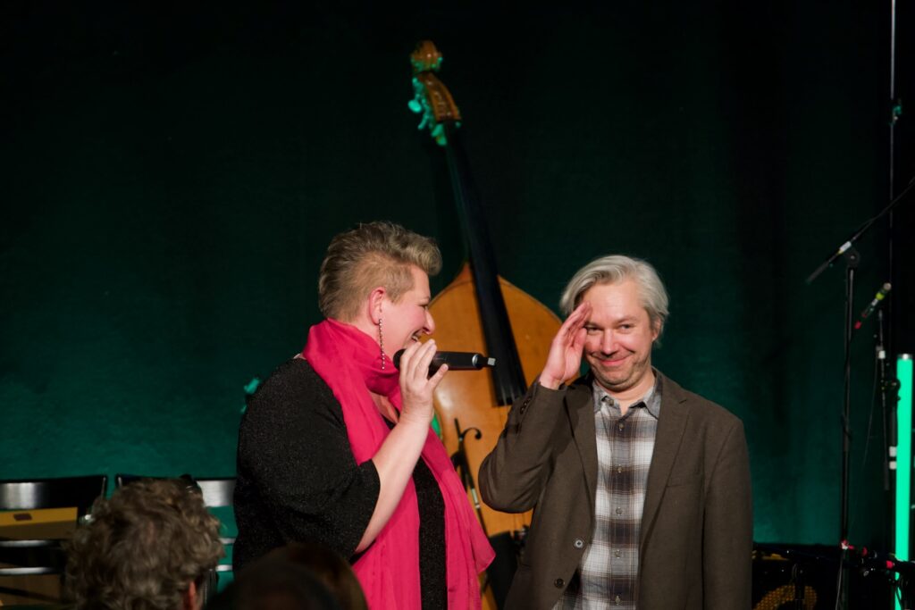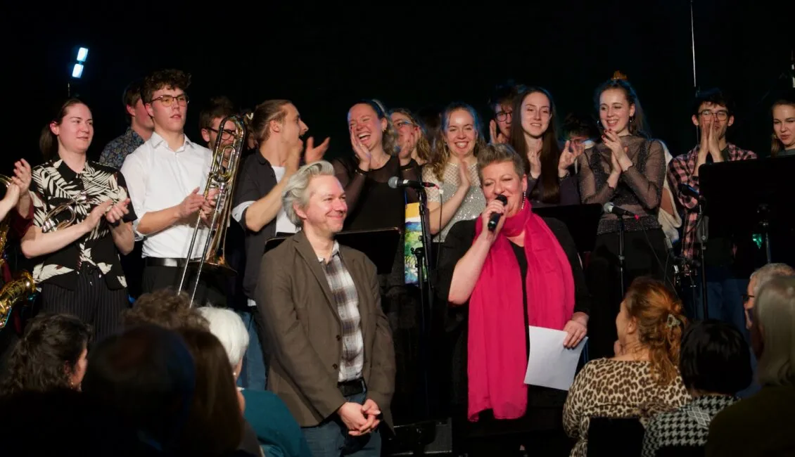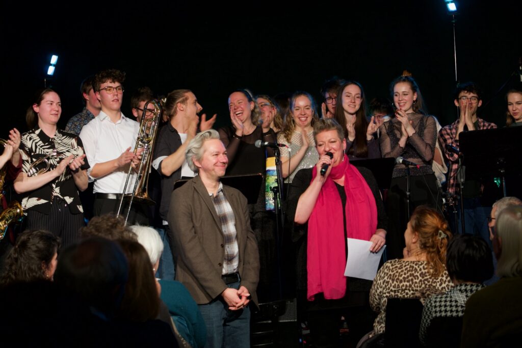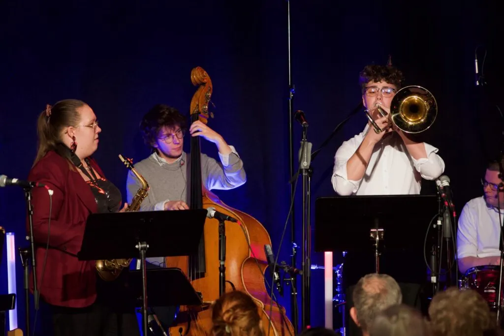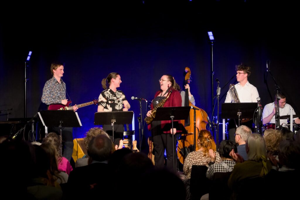 Das Konzert endete mit einem Ausflug in die Musik mit prominenten Horn-Sections: Sara Schmidle (Trompete) überzeugte mit ihrer Combo und brachte das Konzert mit einer groovigen Version des JP Shuffles der jungen Trompeterin Summer Camargo und dem Neo-Swing Song Hey Pachuco mit Latin-Einflüssen zu einem grandiosen Ende.Das Publikum dankte mit langanhaltendem Applaus und war sichtlich erfreut ob der hervorragenden Qualität der Musik, die da im Kesselhaus erklingen durfte.